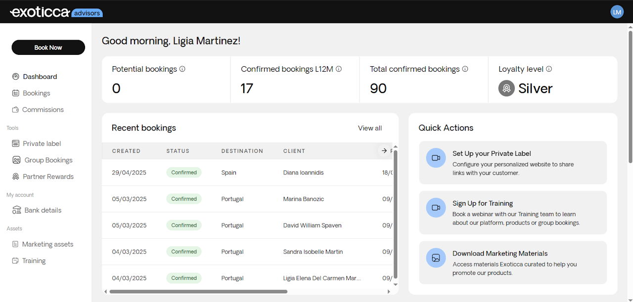 The Dashboard is designed to give you the tools and visibility to manage your bookings more effectively.